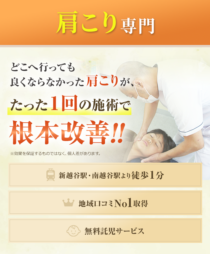 須田整体院では、特殊な検査方法で、肩こりの原因が、首にあるのか?内臓からきているのか?を調べて、3つのポイントを使って肩こりを消していきます。